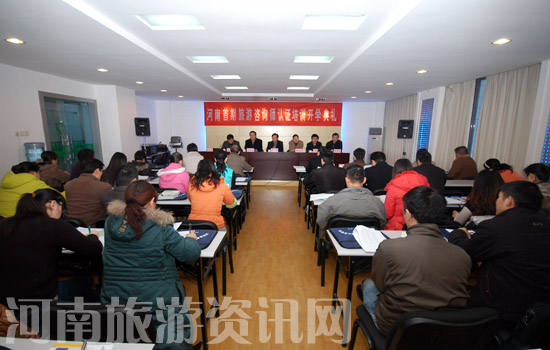 省旅游局政策法規(guī)處處長張建州〔上圖右〕在致辭中說,旅游產(chǎn)業(yè)快速發(fā)展,使 “旅游咨詢師”這個職業(yè)應(yīng)運而生。這一新興的職業(yè)正式“登陸”河南,既是我們加強旅游從業(yè)人員培訓(xùn)、全面推行資格認證和持證上崗制度的具體實施,也是河南加快培養(yǎng)現(xiàn)代旅游管理人才的需要。旅游咨詢師職業(yè)認證培訓(xùn),必然對進一步加快河南中高級旅游人才隊伍的培養(yǎng)步伐、推動全省旅游產(chǎn)業(yè)更好更快地發(fā)展起到十分積極的作用。