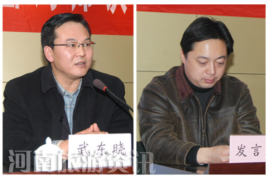高校及授課教師代表鄭州大學旅游管理學院書記武東曉〔上圖左〕,學員代表《禪宗少林·音樂大典》副總經(jīng)理李朝暉〔上圖右〕分別在會上作了發(fā)言。