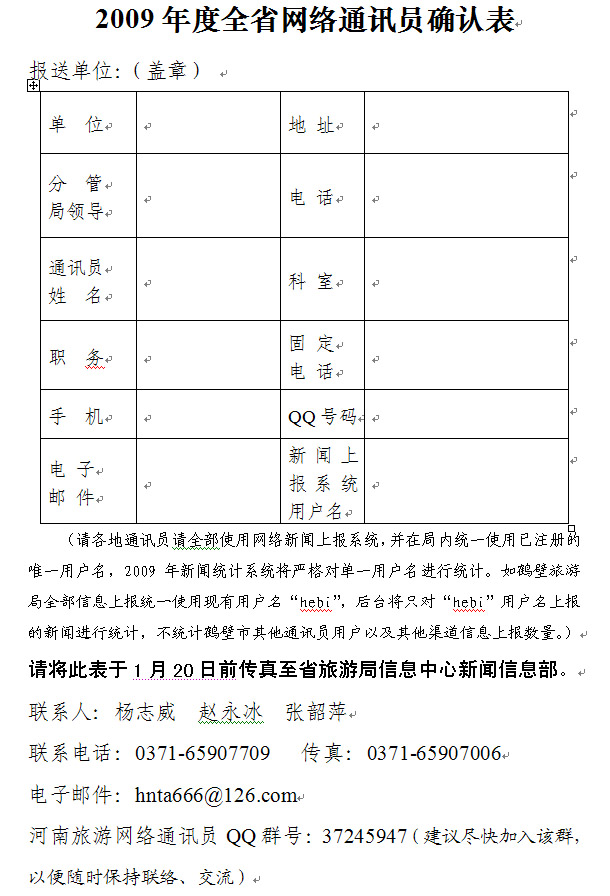 3. 2009年各省轄市旅游局網(wǎng)絡(luò)通訊員確認(rèn)表