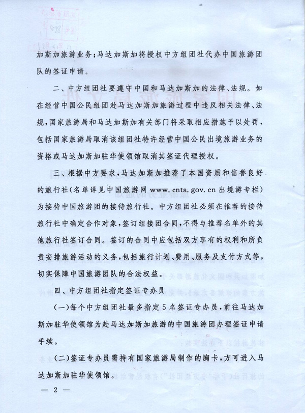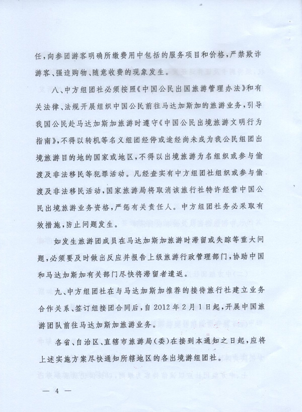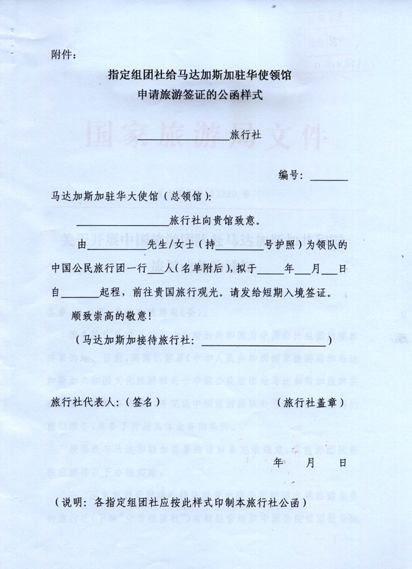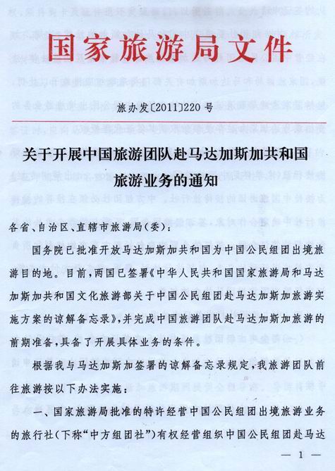 國家旅游局關于開展中國旅游團隊赴馬達加斯加共和國旅游業(yè)務的通知