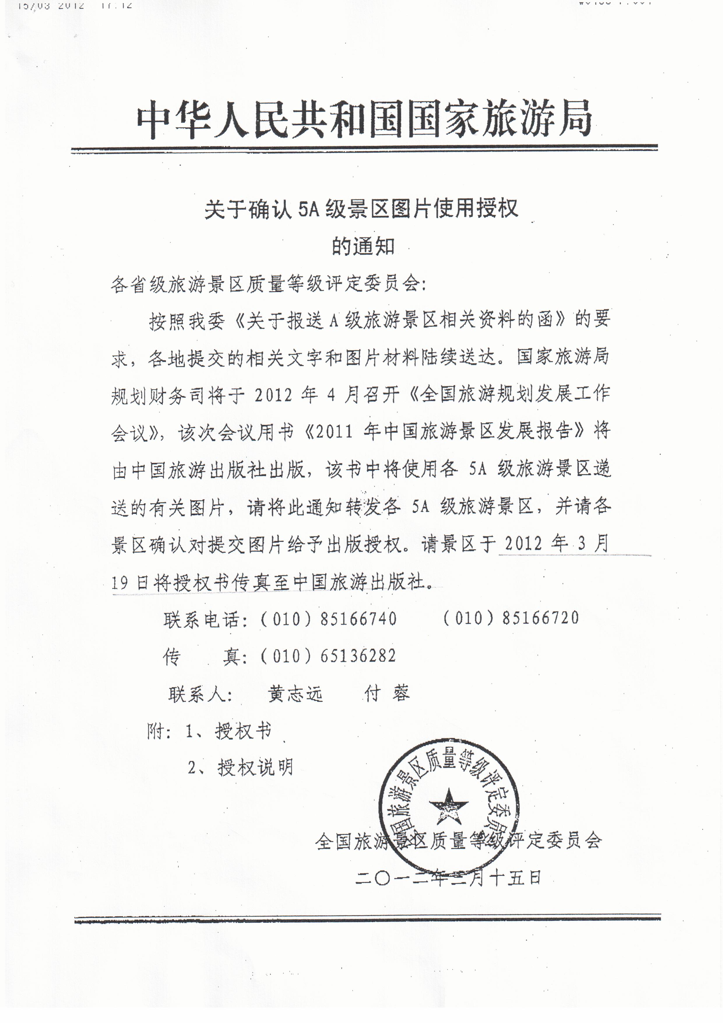 現(xiàn)將全國旅游景區(qū)質(zhì)量等級評定委員會《關于確認5A級景區(qū)圖片使用授權的通知》轉(zhuǎn)發(fā)給你們,請按照通知要求,通知本轄區(qū)內(nèi)