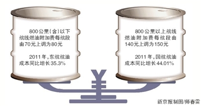 800公里以下航線上調(diào)至80元,800公里以上航線上調(diào)至150元