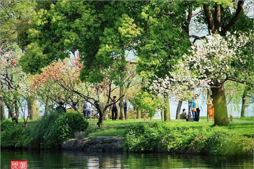 因此每到陽春三月,蘇堤上柳絲輕揚,翠浪翻空,碧桃吐艷,紅霞滿地,十里長堤,彌漫著綠煙彩霧,置香燕郁,令人陶醉。是最佳的旅游和攝影時節(jié)。