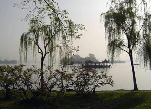 早春四月,迎著熹微晨光,沿修長的湖堤漫步,但覺輕風徐來,十里垂柳飄忽。在輕煙薄霧中,灼灼紅桃含露開放,宛若噴霞,景色著實嬌媚迷人,而當春雨霏霏,透過裊娜柳絲眺望西湖,但見薄靄彌漫,漸遠漸淡,景色更是奇幻誘人,被人稱為“六橋煙柳”。蘇堤連接了南山和北山,給西湖增添了一道嫵媚的風景線。