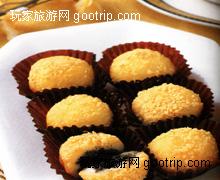 山東芝麻棗泥湯圓 先將大紅棗煮熟去核擦泥,豬板油去膜用刀拍碎,兩者加白細砂糖搓成餡心,和水磨糯米粉做成小湯圓,芝麻炒熟和白細砂糖研成細末成炒面,將煮熟的小湯圓在炒面中滾一圈即可,吃時油潤綿軟。
