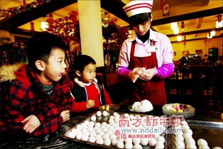 傳統(tǒng)湯圓的做法讓小孩感到新奇