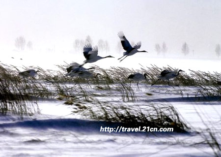 特別提醒:以往每年9、10月份扎龍丹頂鶴就會(huì)往溫暖地區(qū)南遷,約11月中旬陸續(xù)抵達(dá)黃河三角洲自然保護(hù)區(qū)、江蘇鹽城越冬地避寒。如今隨著氣候和環(huán)境變化,不少丹頂鶴選擇留守扎龍過(guò)冬。雪地丹頂,妙不可言,不容錯(cuò)過(guò)。