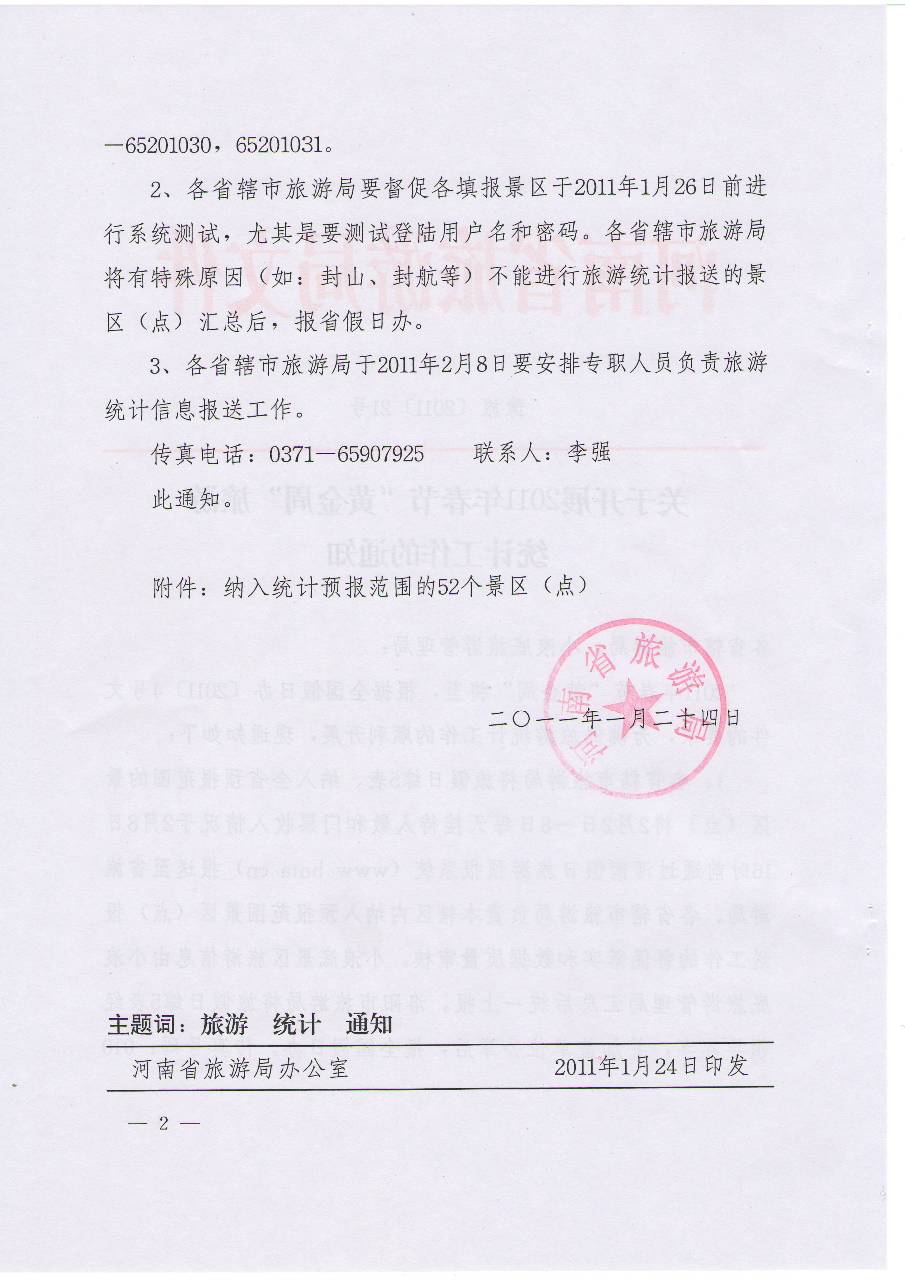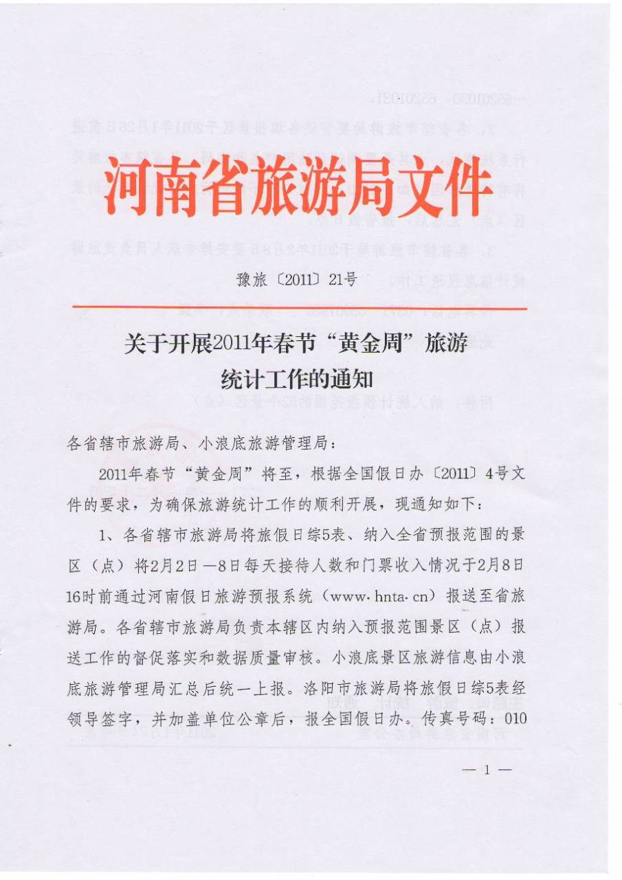 2011年春節(jié)“黃金周”將至,根據(jù)全國假日辦〔2011〕4號文件的要求,為確保旅游統(tǒng)計工作的順利開展,現(xiàn)通知如下: