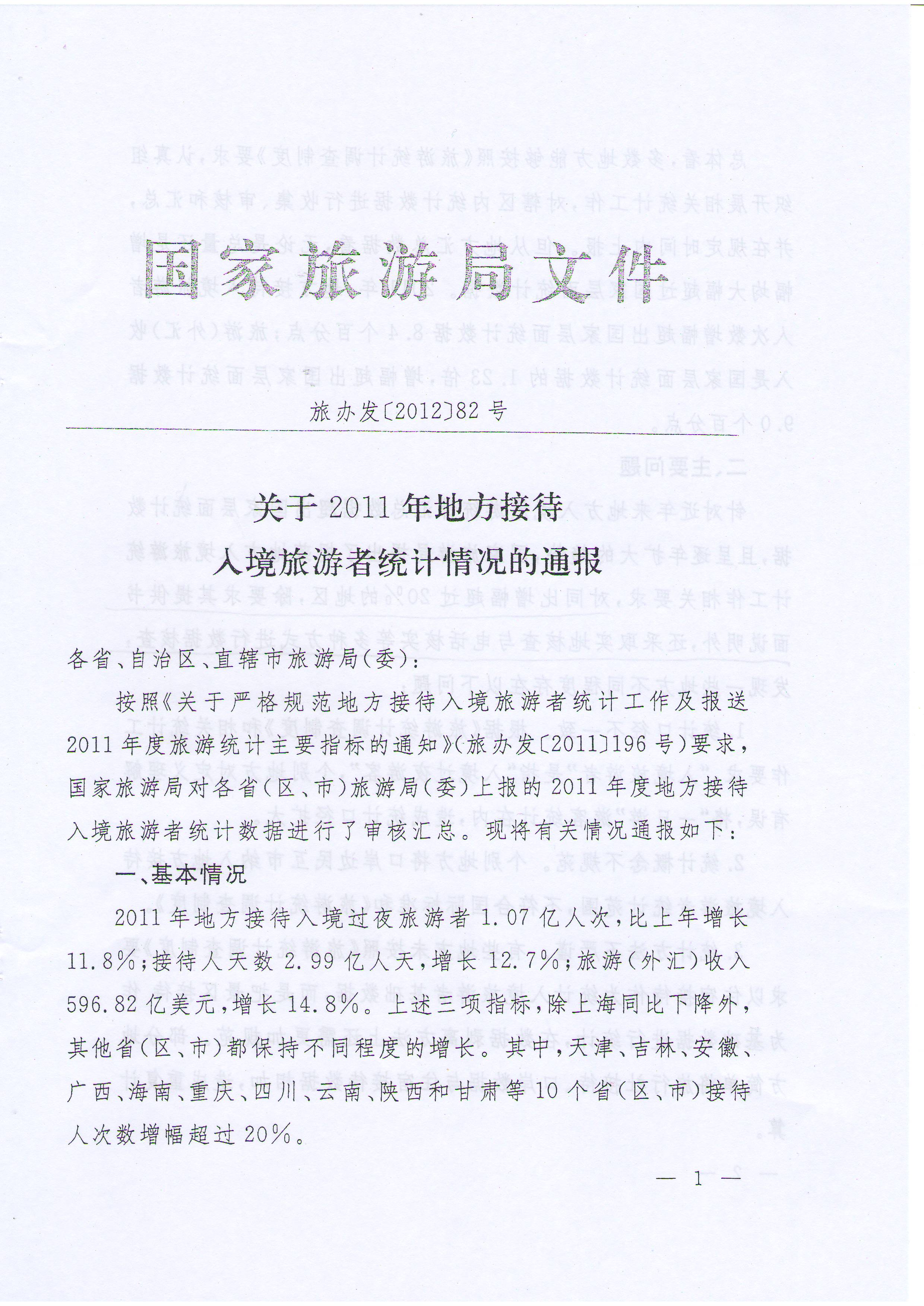 附件:關于2011年地方接待入境旅游者統(tǒng)計情況的通報。