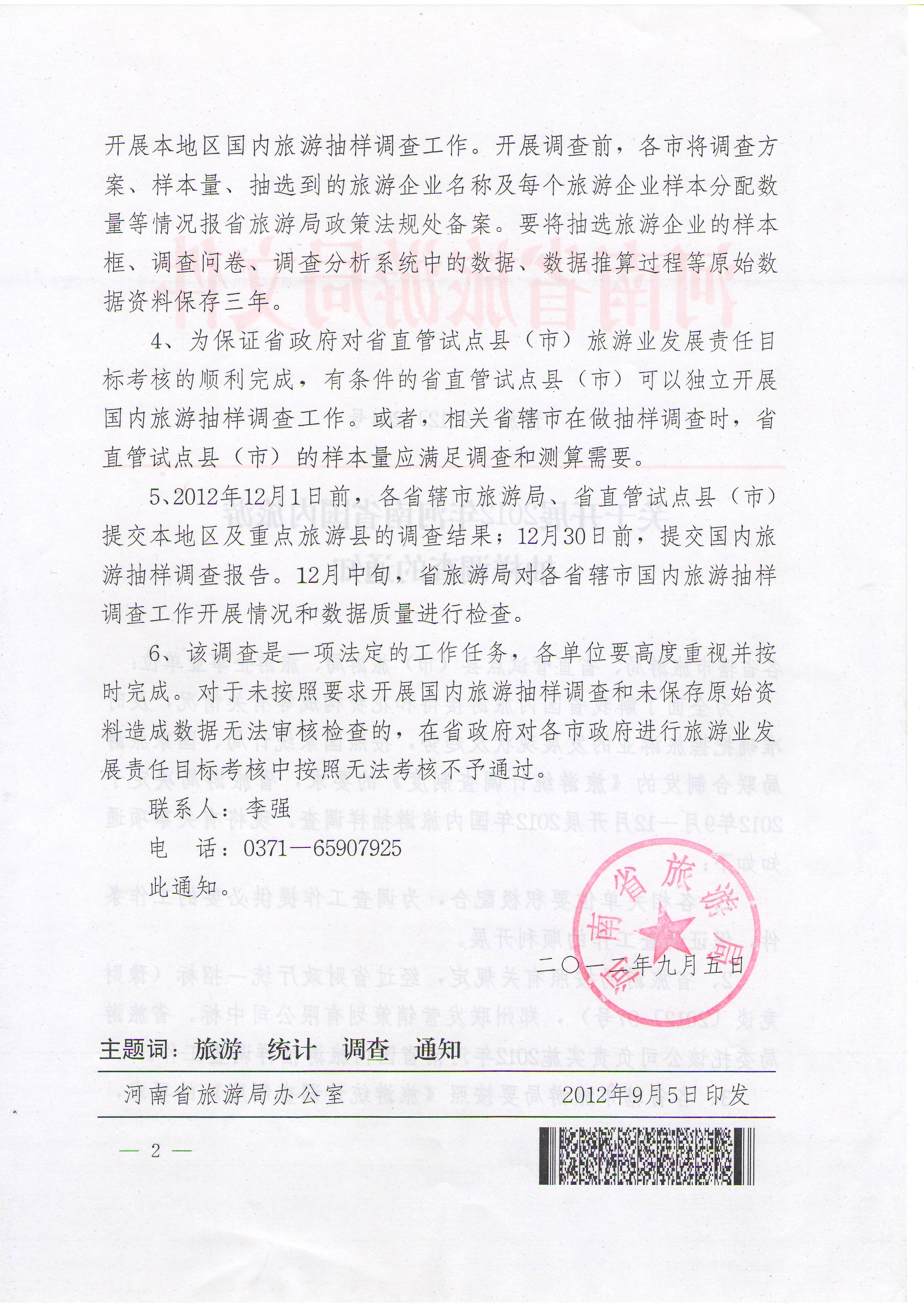 關(guān)于開展2012年河南省國內(nèi)旅游抽樣調(diào)查的通知