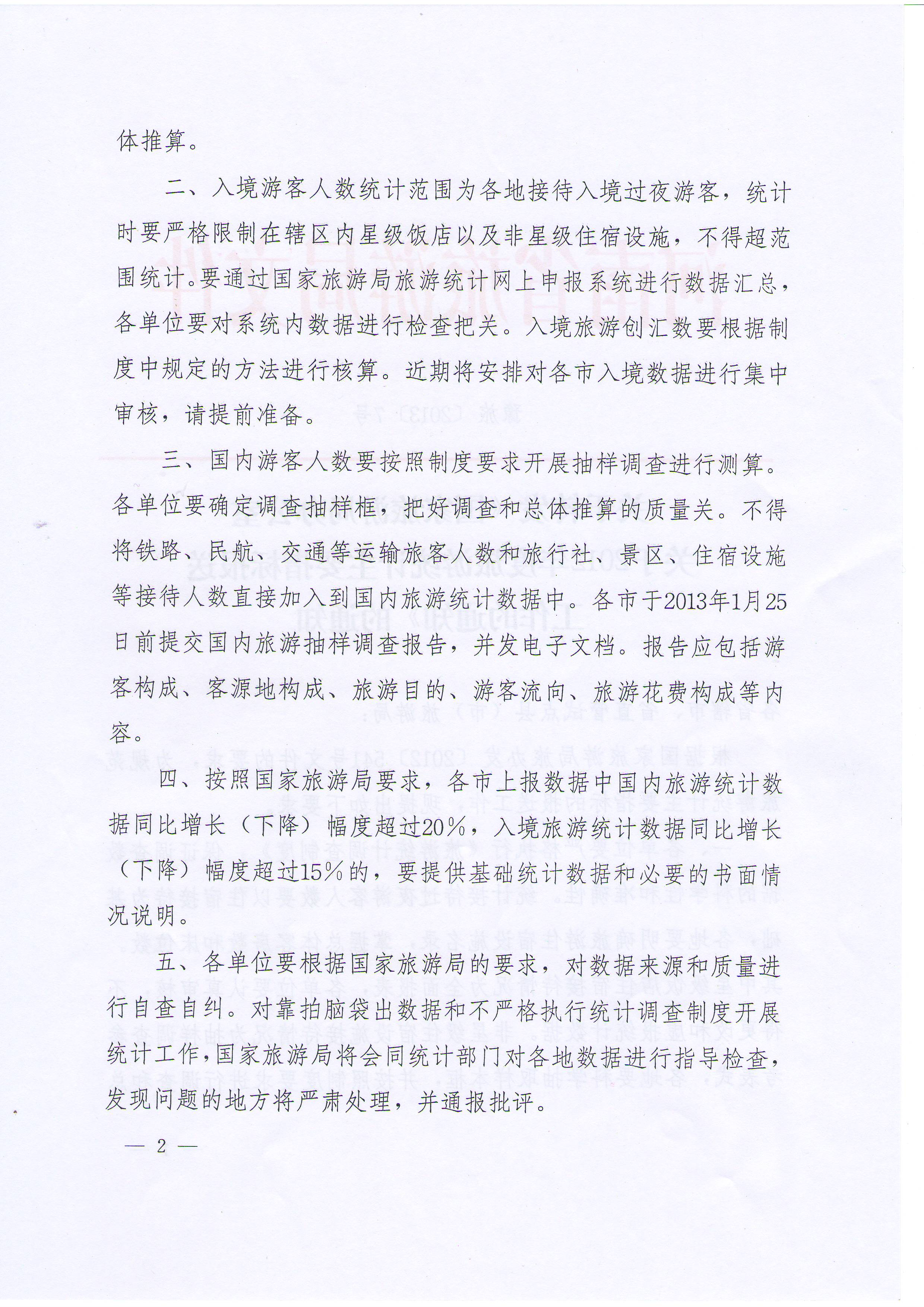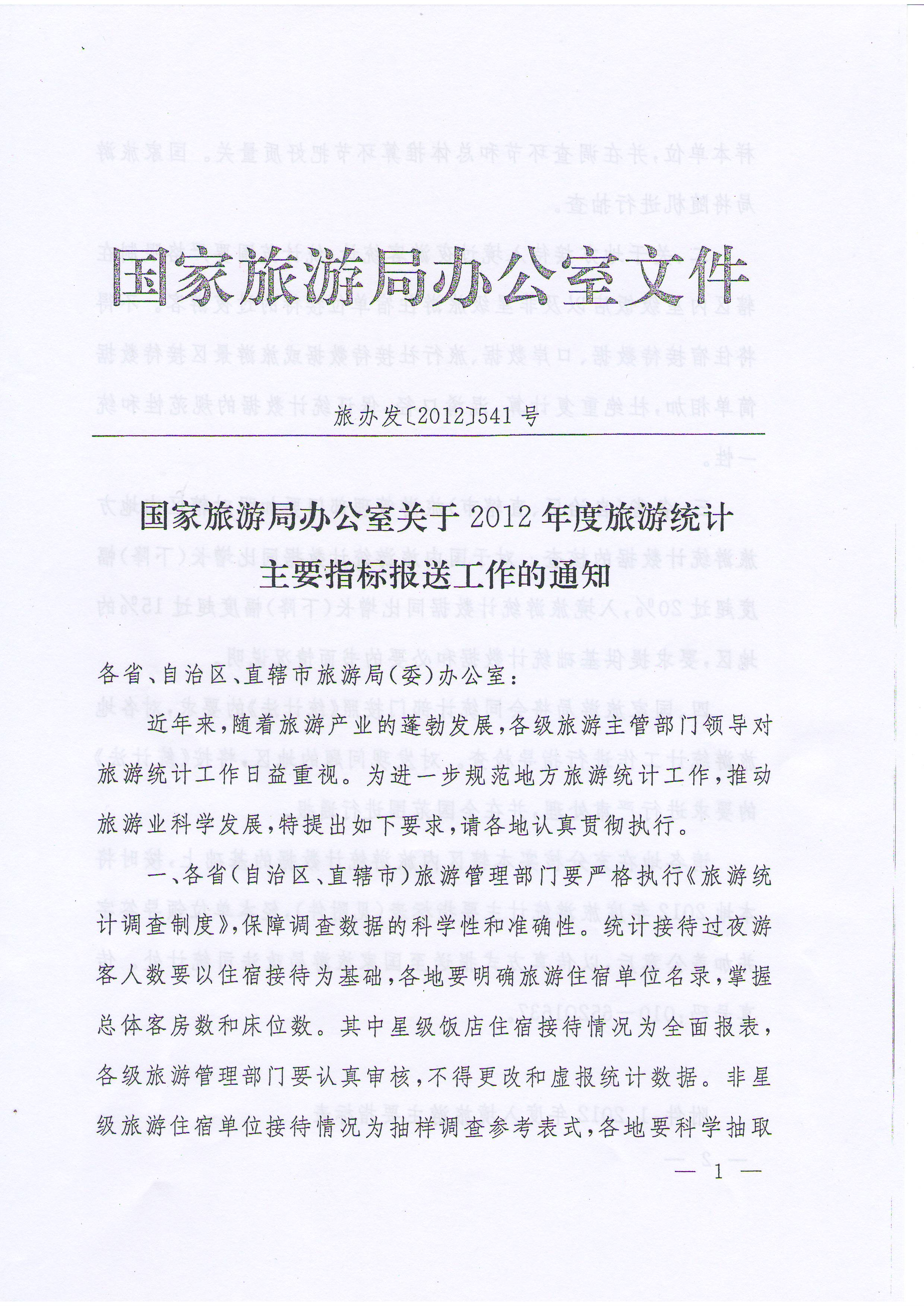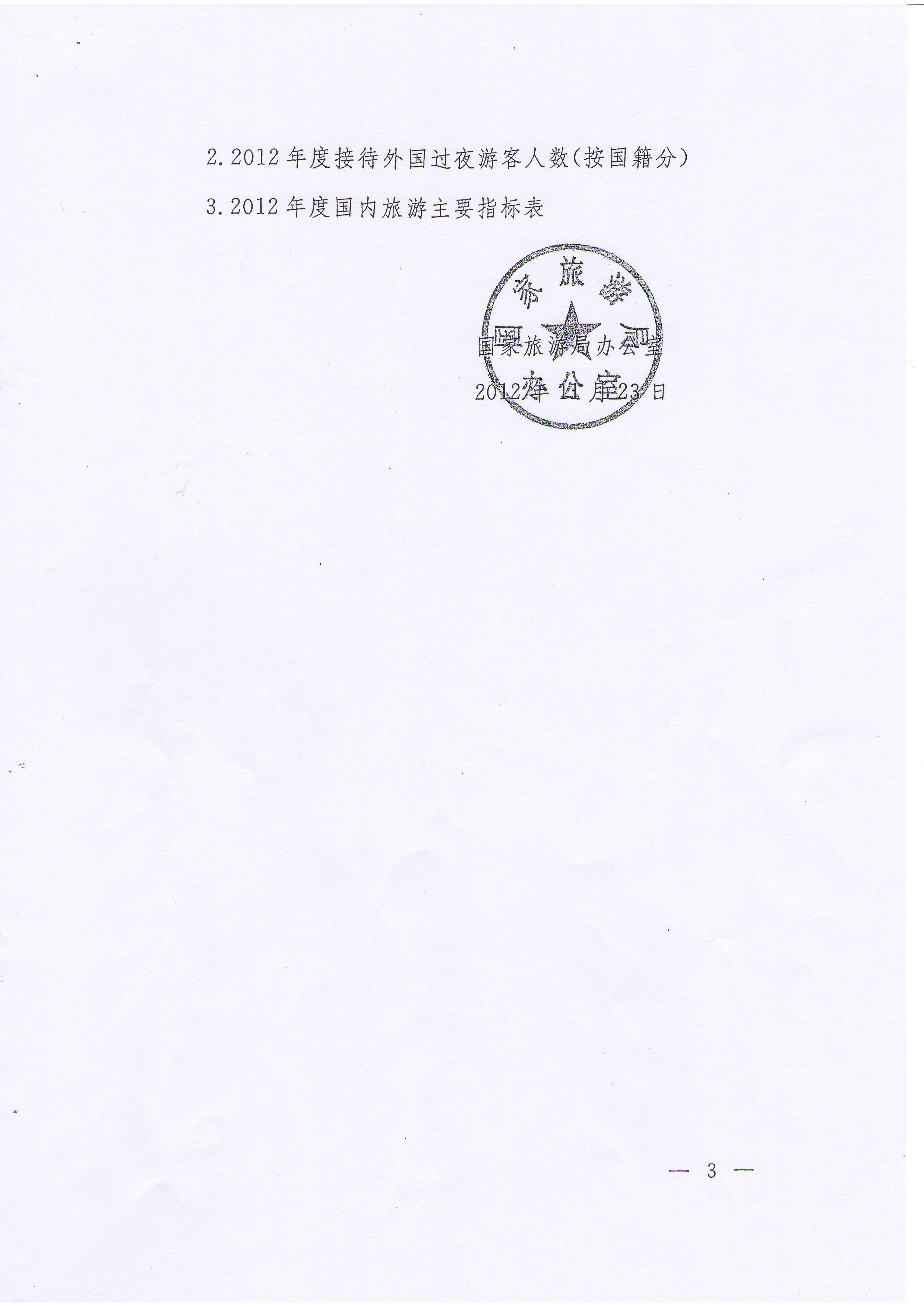 2.《國家旅游局辦公室關(guān)于2012年度旅游統(tǒng)計主要