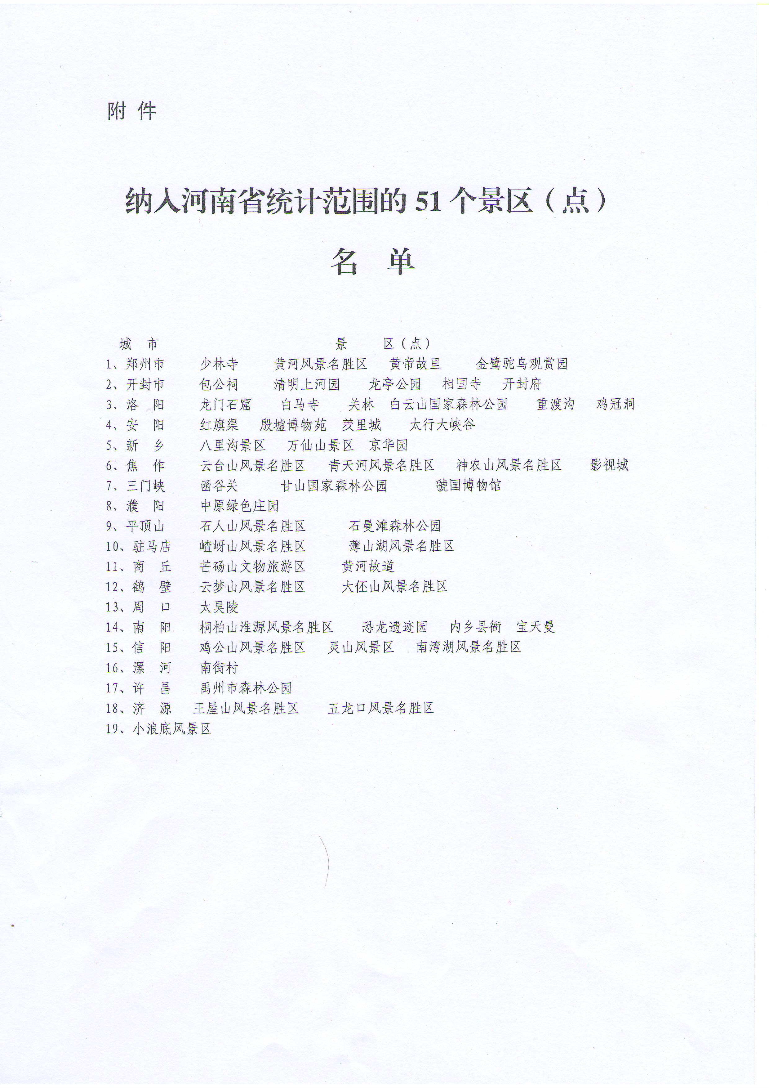 附件:納入河南省統(tǒng)計(jì)范圍的51個(gè)景區(qū)(點(diǎn))名單。