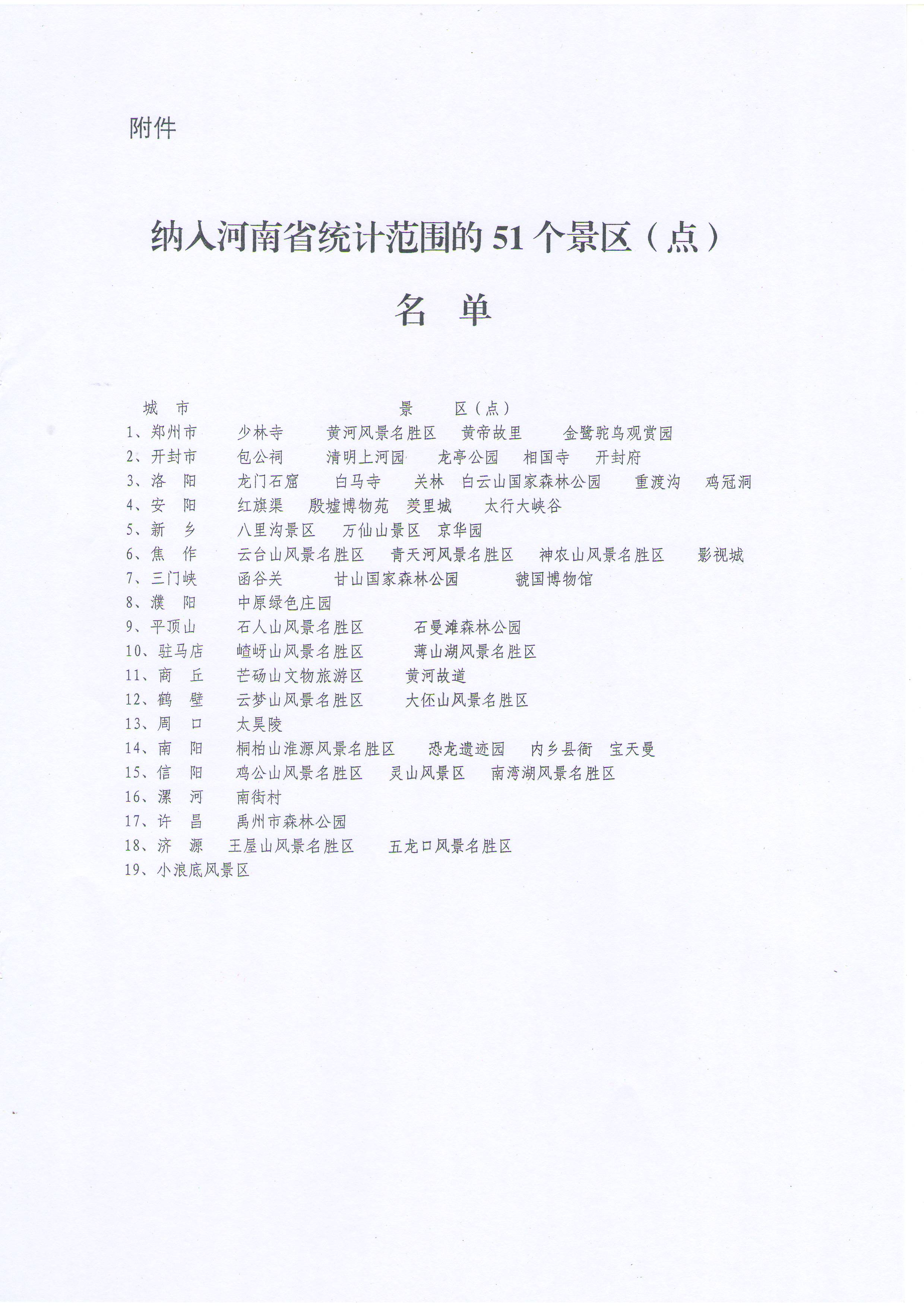 附件:納入河南省統(tǒng)計(jì)范圍的51個(gè)景區(qū)(點(diǎn))名單。