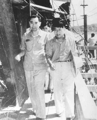 1958年4月20日至25日,中共中央副主席、國務院總理周恩來,中共中央政治局委員、國務院副總理彭德懷等在河南省視察工作。20日,周恩來在省直機關黨員干部會議上,就國內(nèi)外形勢和黨的社會主義建設總路線等問題作重要講話。21日至25日,周恩來一行到三門峽工地和陜縣、偃師縣農(nóng)村視察工作,并主持召開河南、山東、陜西等四省和國務院有關部門負責人參加的三門峽現(xiàn)場會,聽取各方面的意見。最后決定降低原來由前蘇聯(lián)專家設計的較高的蓄水位,以限制回水末端的影響。