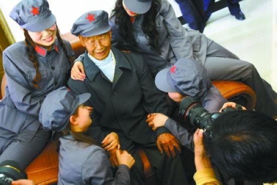 101歲的老紅軍羅名榜,如今再次戴上紅軍帽心情格外激動。