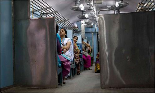 在印度,許多年來婦女都不得不與男人同坐,直到安全問題呈現(xiàn)尖銳之勢,鐵道部才在每輛車中分出兩節(jié)女性車廂,但這些空間還是常常受到男人們的侵占。1992年,孟買開設(shè)的兩列女性專列試運行,但在今年新鐵道部長馬馬塔·班納吉(Mamata Banerjee)上任以前,該計劃長期沒有得到進一步推廣。