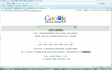 更雷人的是,在谷歌搜索的方框下面有一行字:“google搜索”、“手氣不錯”,在這里卻變成了“谷姐一下”、“寂寞全消除”。