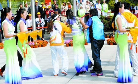 2010年11月18日,廣州亞運(yùn)會(huì)龍舟項(xiàng)目頒獎(jiǎng)儀式,禮儀小姐途中突然暈倒在地,運(yùn)動(dòng)員幫忙照看。當(dāng)日艷陽高照,令人幾乎無法睜開眼睛,同時(shí)龍舟項(xiàng)目的金牌太多,頒獎(jiǎng)時(shí)禮儀小姐需要志愿者的幫助才能托起獎(jiǎng)牌。禮儀小姐昏厥倒地,在志愿者的攙扶下又再次暈倒,最終被扶離場。