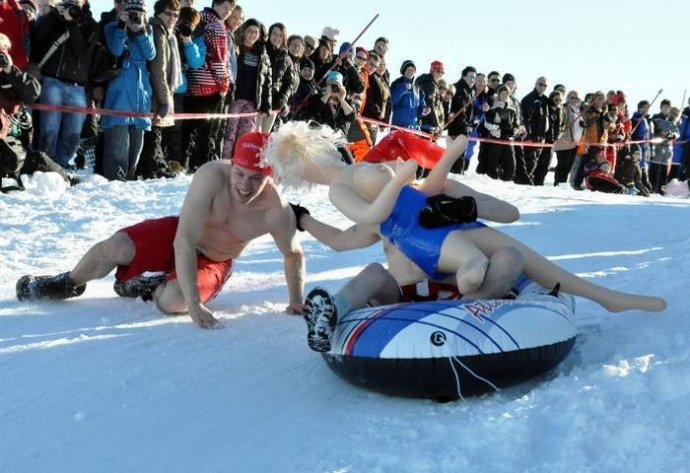 俄羅斯瘋狂的半裸滑雪狂歡