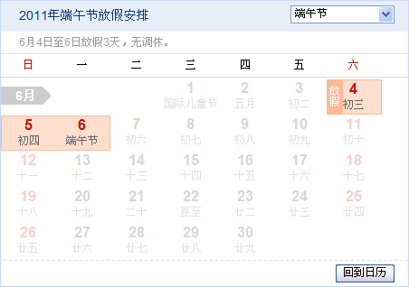 2011年端午節(jié)放假安排
