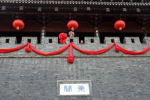其間,舞獅者的不時亮相,贏得游人的陣陣喝彩;間或敲響的鑼鼓,使現(xiàn)場的氣氛濃郁起來。此刻,人們眼光齊聚城樓,翹首以待佳人的繡球,可是左等右盼,就是不見美人面,情急之下,游人催問司儀,但不緊不慢的司儀卻說起了規(guī)矩:什么不是王老五的,再帥也不能接繡球,否則吃不了兜著走。引來一陣哄笑。