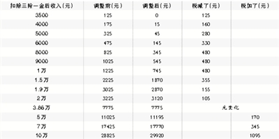 個稅調(diào)整前后對比表格解讀:月薪8000元至1萬元減稅最多;月薪超3.86萬元稅負增加