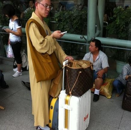 朋友剛在南京火車站拍到的,一個(gè)很潮的和尚,背著LV包,拿著Rimowa拖箱,Rimowa德國(guó)品牌,成為了成功人士的必要裝備,Rimowa也因之而被看作為“時(shí)尚+實(shí)用”的代名詞。(網(wǎng)友 )