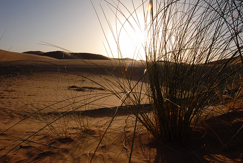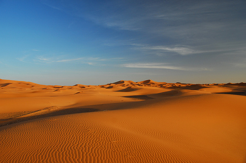 沙漠地區(qū)溫差大,平均年溫差可達(dá)30-50℃,日溫差更大,夏天午間地面溫度可達(dá)60℃以上,若在沙灘里埋一個(gè)雞蛋,不久便燒熟了。夜間的溫度又降到10℃以下。由于晝夜溫差大,有利于植物貯存糖分,所以沙漠綠洲中的瓜果都特別甜。