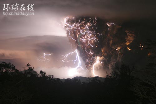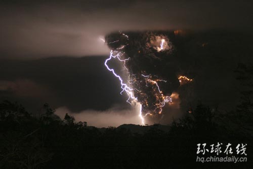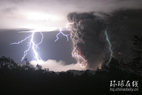 智利火山噴發(fā)閃電奇觀