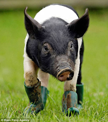 英國約克郡一頭名叫“灰姑娘”的小豬可能是世界上第一頭患有潔癖癥的小豬,自出生后,它一直不肯和兄弟姐妹一起在泥巴中玩耍。直到近日主人為它定做了4只小靴子,它才終于肯和泥巴親近。