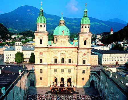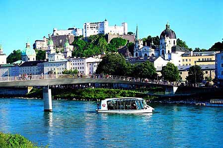 薩爾斯堡是奧地利西部阿爾卑斯群山里的一座山城,薩爾斯察河流經(jīng)市內(nèi),風(fēng)光明媚,如詩如畫,這座奧地利最美麗的城市之一,既有城市的規(guī)范,也富有小鎮(zhèn)的優(yōu)雅氣息。作為音樂奇才莫扎特的故鄉(xiāng),薩爾斯堡人有著足夠的驕傲。確實,這里一年四季樂聲悠揚,除了街頭巷尾的音樂聚會外,各種正式的音樂會也讓人們目不暇接。