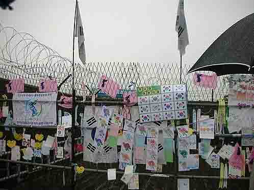 有人說,戰(zhàn)爭是用牙齒來解開政治的繩結(jié)。國家的搏弈,翻云覆雨,吊詭的政治,變幻莫測,這些不是一個(gè)升斗小民所能理解的。我無意也無法評價(jià)這場戰(zhàn)爭,也不知道在這場戰(zhàn)爭中有多少家庭支離破碎、有多少人顛沛流離、有多少兄弟手足相殘,又有多少人長眠地下。但我知道,在這場戰(zhàn)爭中,象雕像里兄弟相擁場面在一定不會(huì)多見,也知道不是所有繩結(jié)都能用牙齒解開的,這條至今仍解不開的繩子化成一條線,它的名字就叫“三八線”。