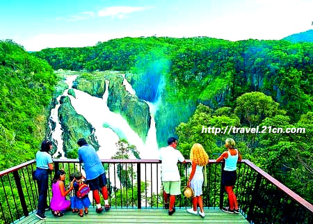 中途我們?cè)诎蛡惼俨颊就O聛?lái)小逛。正巧遇上對(duì)面的庫(kù)蘭達(dá)雨林觀光火車(據(jù)說(shuō)它是世界上最古老的雨林火車之一)中途停站,人們正魚貫而出。我在這邊看臺(tái),身邊一對(duì)老年夫婦,相互依偎著正凝視右下方的巴倫瀑布,“曾是當(dāng)時(shí)攜手處,游遍芳叢”,風(fēng)裹著涼涼的水汽吹到看臺(tái)上,不知怎的,心頭騰起莫名的感動(dòng)。