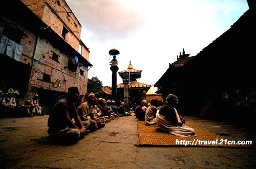 巴克塔普爾離開加都不遠(yuǎn),據(jù)說是是九世紀(jì)時(shí)國王 Raja Ananda Malla 按毗濕奴的形狀而建。到達(dá)的時(shí)候已是黃昏時(shí)分。一只腳踏進(jìn)了杜巴廣場就好像整個(gè)人被時(shí)空的機(jī)器扯到了歷史的幕布前,我們和這一切格格不入,但是又絲毫不影響你去窺探,這注定了你只能是一個(gè)旅游者。他們的腳步依然不停,不會(huì)因?yàn)橛慰偷牡絹矶淖兞朔较颉?BR> 在極富盛名的shiva guest house(濕婆旅店)住下,便忍不住推窗而去,急切地想呼吸屬于尼泊爾的氣息。窗外的屋檐下滿是精美的木雕,這古老的建筑就是世界文化遺產(chǎn)的一部分,想到這個(gè)突然有點(diǎn)激動(dòng)。整個(gè)杜巴廣場一覽無余。太陽漸漸隱沒在那古老的神像后面,只有寺廟角上的鈴鐺還在孤獨(dú)地守望,偶爾有幾只晚歸的鳥撲哧著翅膀。樓下不斷有人從神塔邊走過,黃昏的陽光和路燈撒下了斜長的斑駁影子,歷史就這么靜謐著。
