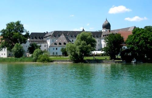 與男人島的宏偉壯觀不同,女人島更讓人感到清幽寧靜的氛圍。女人島的來歷其實和男人島相似,源于島上13世紀(jì)女修道院的嚴(yán)格規(guī)定。從那時起,修女們就一直沒有離開過這里。幾百年來,修女們過著幾乎相同的生活:修學(xué)、勞作,并因此練得了一手烹飪絕活——基姆湖熏魚。實際上兩個小島的所有者,都是當(dāng)時社會的“強權(quán)”。當(dāng)年的教會依靠至高無上的權(quán)力,可以擁有島嶼并禁止他人進入。而后來專制君主體制稱雄,男人島就成了路易二世專權(quán)的產(chǎn)物。