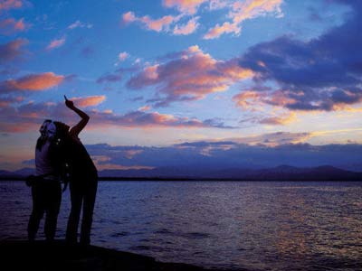 我們的第一感覺(jué)就是錯(cuò)誤地來(lái)到了一個(gè)軍港,稍稍靠近偷眼一瞟,果然見(jiàn)在不遠(yuǎn)處碼頭停靠著兩三艘軍艦。此時(shí)若再原路返回另選地方,估計(jì)就看不成日落了。于是我們微笑著誠(chéng)懇地向軍官提出了自己都不抱多大希望的申請(qǐng):我們是游客,想進(jìn)去看日落、拍照……也許微笑就是最好的通行證,軍隊(duì)長(zhǎng)官很快同意了我們的請(qǐng)求,只是要求只能向著海的方向拍照,不能向著軍營(yíng)的方向拍照,如此而已。也就是說(shuō),拍軍艦也沒(méi)有問(wèn)題的……