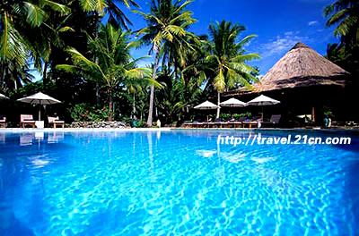 離南帝國際機(jī)場不遠(yuǎn)的碼頭每天都有好多班航船去各個(gè)小島。我選擇了離陸地最近的南海島(South sea lsland)。南海島年平均氣溫24-30℃.但由于有清涼的海風(fēng)吹拂.所以并不十分炎熱。船在陽光燦爛的大海上行進(jìn).時(shí)而有水上飛機(jī)掠過.擊破藍(lán)色的寧靜。海蔚藍(lán)、天透徹、沙潔白、樹碧綠——絢爛的色彩讓人不知是身處夢境還是童話。船頭突然一轉(zhuǎn).一座小島仿佛從天而降一一純白的小島被純藍(lán)的海水包圍著.島上樹影婆娑.兩個(gè)皮膚黝黑的島民彈著吉他.與好萊塢電影中的場景沒兩樣——“哇!”滿船人一起發(fā)出尖叫.抑制不住到了天堂的興奮。