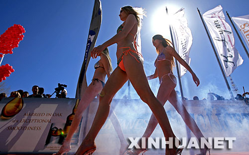 這是2007年3月10日,幾名模特在黎巴嫩滑雪勝地法拉亞展示內(nèi)衣,吸引不少游客。