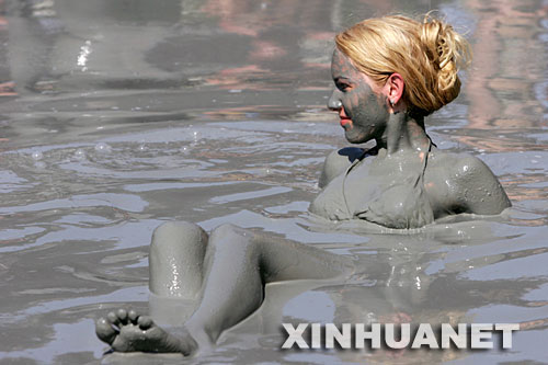 這是2006年7月3日,一名女游客在土耳其達(dá)爾揚(yáng)省的穆拉享受泥漿浴。