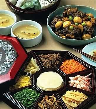 節(jié)慶美食少不了肉菜,秋秀風味最濃重的肉菜,當數(shù)燉牛腱莫屬。燉牛腱是用新栗子和秋季美味蘑菇等料的營養(yǎng)食品,再加牛下水、銀杏、煎雞蛋和芹菜桿等澆料,使之色麗味美。
