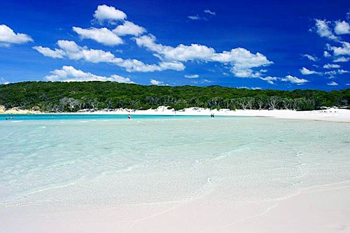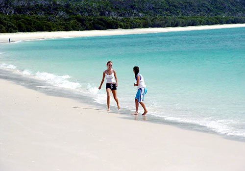 Whitehaven Beach(白色天堂),誰(shuí)也無(wú)法抗拒或遺忘的名字,這是一個(gè)延綿長(zhǎng)達(dá)六公里,以純白硅砂鋪成的海灘。硅砂的沙質(zhì)柔軟度極高,赤腳踏在上面,完全沒(méi)有一般沙灘的刺腳感覺(jué),安然躺在上面享受日光浴,軟綿綿感覺(jué)宛若舒適被褥。試想在世上最美麗的海灘上,躺臥于碧波﹑陽(yáng)光﹑海灘之中,會(huì)是多么的寫意!