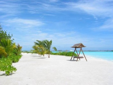 馬爾代夫位于斯里蘭卡南方650公里的海域里,由北向南經過赤道縱列,形成了一條長長的礁島群地帶。1000多個島嶼都是因為古代海底火山爆發(fā)而成,有的中央突起成為沙丘,有的中央下陷成環(huán)狀珊瑚礁圈。若能搭乘小飛機遨翔于馬列南、北環(huán)礁,從空中俯瞰馬爾代夫,您定會驚異非常,無際的海面上,星羅棋布一個個如花環(huán)般的小島,猶如天際抖落而下的一塊塊翠玉。小島中央是綠色,四周是白色,而近島的海水是淺藍色、水藍、深邃的藍,逐次漸層,印度洋有如一面藍色的天鵝絨布,在藍色天鵝絨布上,則綴飾著一串串的翡翠、綠寶石!
