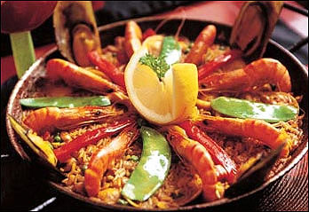 套餐也有很多種,一定要嘗的是西班牙什錦海鮮飯(Paella)套餐,因為這是巴塞羅那的標志性菜肴,就好像北京的烤鴨,而且這道菜的用料最全,最能代表巴塞羅那的風味。海鮮飯以特制的米飯為主,加上各種碎海鮮,肉類和其他蔬菜,制作中加以西班牙特色調(diào)料,具有濃烈的西班牙風味。值得一提的是,海鮮飯里的米飯是經(jīng)過特殊處理的,所以吃起來軟中帶硬,硬中帶軟,口感很奇特。