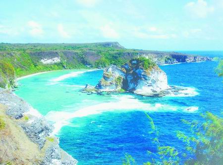 愛玩兒海的人,在塞班就像過年,天天可以下水,時時可以游泳。酒店都是依海而建,游客住的都是“海景房”,推窗見海,濤聲伴眠,真是分分秒秒都舒坦。玩兒海,是因為塞班的大海物產(chǎn)豐、色彩艷,塞班的海,堪稱“七彩之海”:藍(lán)色里有深、中、淺之分,綠色中有濃、中、淡之別,更有那美不勝收的、藍(lán)綠相間的“綠如藍(lán)”。萬千美麗的珊瑚蟲,用自己的身軀筑成了層層疊疊、密密匝匝環(huán)狀的五彩珊瑚叢林。大自然的造化,讓珊瑚叢林慢慢地變成了環(huán)島天然“堤壩”。太平洋充滿激情的波濤永不停歇地拍打著環(huán)島堤壩,在海中奇跡般地造就一個天然圓形噴泉,一米多高的白色水墻此起彼伏,生生不息,不僅成就了這氣勢磅礴的曠世奇觀,而且圍出了一個動靜相宜的生態(tài)圈,護(hù)佑著美麗的島嶼,護(hù)佑著海里的生靈。色彩斑斕的貝類、五顏六色的藻類、游弋穿梭的魚類,在這里愜意舒心競自由,以自己的萬般美艷豐富著大海的顏色。從高處鳥瞰,環(huán)狀噴泉吐出的白色長練,不時地卷起千堆雪,讓珊瑚叢林的美麗從海底延伸到了黛色的海面。