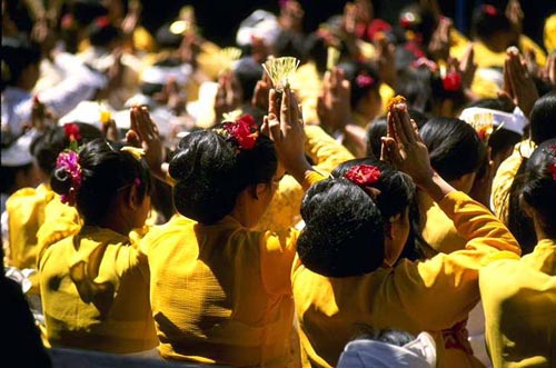 潔身儀式是在女孩子月經(jīng)初潮時(shí)舉行,是巴厘島女孩子一生中最為重要的儀式之一。少女在月經(jīng)初潮時(shí)都必須被幽禁在自己的臥室,房門前懸掛著鮮嫩的椰葉。任何男人和外人在此期間都不得進(jìn)入甚至靠近少女的臥室。貴族富人少女家,還要為她在村里敲響梆子,宣告姑娘已到花季,可以婚配了。