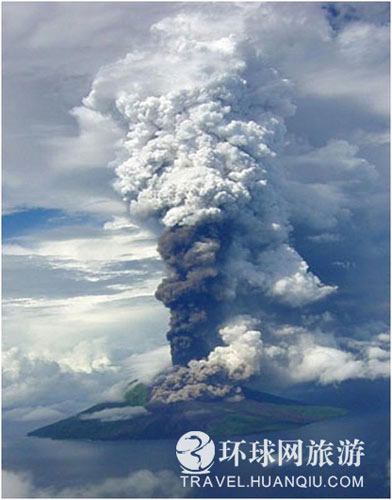 屏息細(xì)瞧,火山口外沿直徑約300多米,坑口深約100多米。底部3個(gè)噴火口成三角排列,競(jìng)賽似的輪番噴發(fā)。忽一聲霹靂從腳下傳來(lái),無(wú)數(shù)巖塊伴著濃煙烈火噴涌而出。經(jīng)指點(diǎn),原來(lái)我們路上所見(jiàn)白煙是水蒸氣,黑霧則是火山灰。