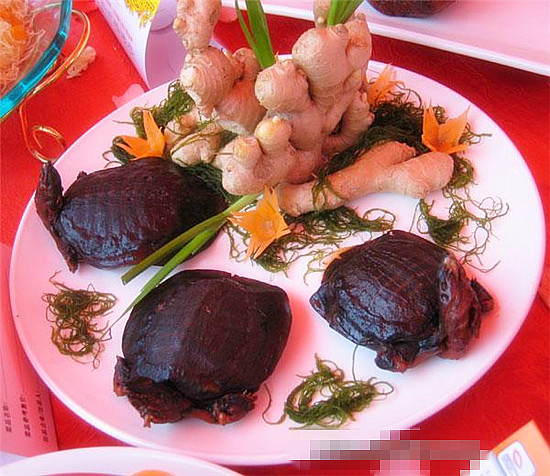 信陽鹵水甲魚:豫南明珠信陽山好水更好,特產(chǎn)甲魚,個(gè)大體肥,富含多種微量元素。鹵水甲魚,也稱鹵水馬蹄鱉,是一款香料味較濃的地道信陽名吃。它的成菜具有大小一致,口味濃香,色澤明亮,口味適中,味道醇厚,回味悠長的特點(diǎn),深受廣大食客的喜愛。