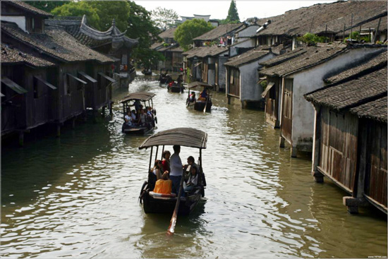 一尾尾的烏篷船穿梭在小鎮(zhèn)的水道上,搖曳起一朵朵的漣漪,搖曳了多少青春,搖曳了多少夢(mèng)~~~~
