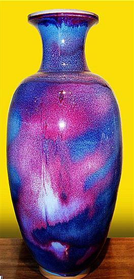 鈞瓷:鈞瓷是我國(guó)宋代五大名窯瓷器之一,以獨(dú)特的窯變藝術(shù)而著稱于世,素有“黃金有價(jià)鈞無(wú)價(jià)”和“家有萬(wàn)貫,不如鈞瓷一件”的美譽(yù)。是河南省禹州市神垕鎮(zhèn)獨(dú)有的國(guó)寶瓷器,憑借其古樸的造型、精湛的工藝、復(fù)雜的配釉、“入窯一色出窯萬(wàn)彩”的神奇窯變,湖光山色、云霞霧靄、人獸花鳥蟲魚等變化無(wú)窮的圖形色彩和奇妙韻味,被譽(yù)為中國(guó)“五大名瓷”之首。新中國(guó)成立后,在周恩來(lái)總理的直接關(guān)懷下,鈞瓷的恢復(fù)燒制工作開始,鈞瓷得到了快速發(fā)展,特別是改革開放以來(lái),鈞瓷生產(chǎn)工藝與水平都得到了劃時(shí)代的提升,不斷的作為國(guó)禮現(xiàn)身世界。