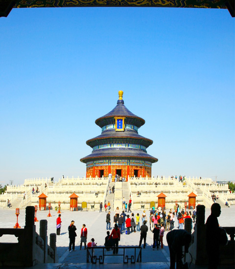 天壇位于北京的南端,是明清兩代皇帝每年祭天和祈禱五谷豐收的地方。它的嚴(yán)謹(jǐn)?shù)慕ㄖ季,奇特的建筑結(jié)構(gòu),瑰麗的建筑裝飾,被認(rèn)為是我國(guó)現(xiàn)存的一組最精致,最美麗的古建筑群,在世界上享有極大的聲譽(yù)。